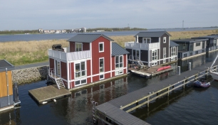 Voor Center Parcs Zeewolde bouwde ABC Waterwoningen vijf woonboten die onlangs werden ingehuldigd in de oude jachthaven Marina de Eemhof.