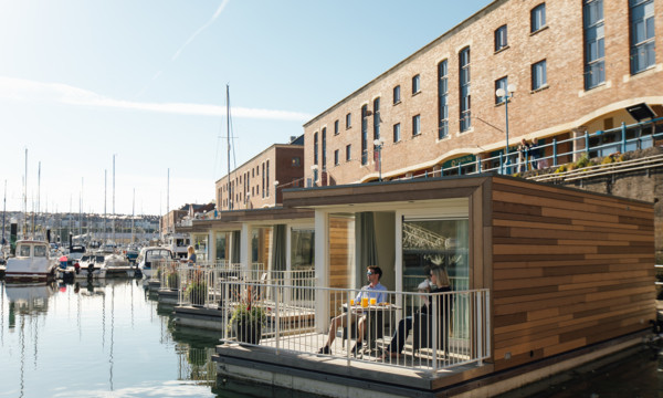 Een drijvende hotelkamer! Uitzicht op de boten en vogels van Milford Waterfront.. Deze geweldige drijvende kamers zijn een unieke en spectaculaire toevoeging aan de bloeiende jachthaven-stad in Wales.