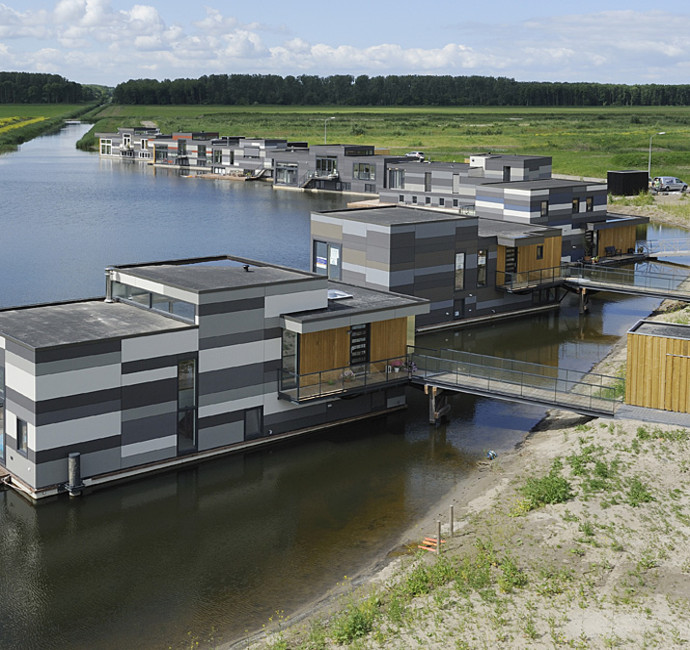 De woningen hebben een lengte van 14,5 m1 tot 18m1 en zijn volledig onder het bouwbesluit gebouwd. Het gemiddelde woonoppervlak is circa 171 m2, de inhoud maar liefst 493m3. De waterwoningen wegen zo’n 150 ton.