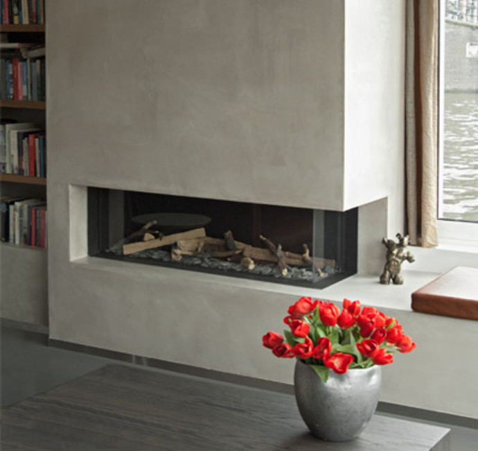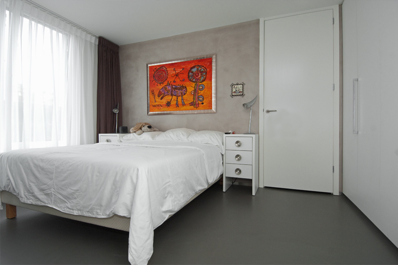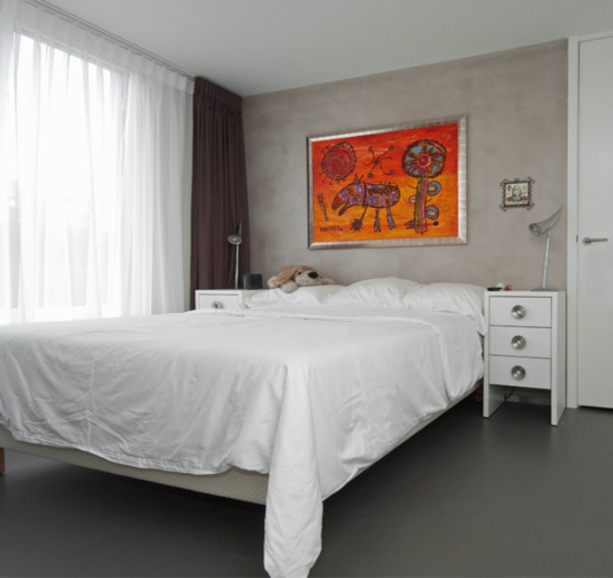 Voor binnen had Hans een duidelijk wensenpakket. ‘Ik wilde geen logeerkamer, wel een gastentoilet. Alles gelijkvloers en een terras aan de achterkant; daar komt tot twee uur zon. Geen muren tussen entrée, keuken en woonkamer. Schuifpuien, een open haard. De bak zo diep mogelijk, vooral voor opslag.’ En is het gelukt? ‘Het is heerlijk hier, ik ben met alles blij. Vrienden vragen vaak of ik niet eens op vakantie moet, ze willen allemaal komen oppassen.’