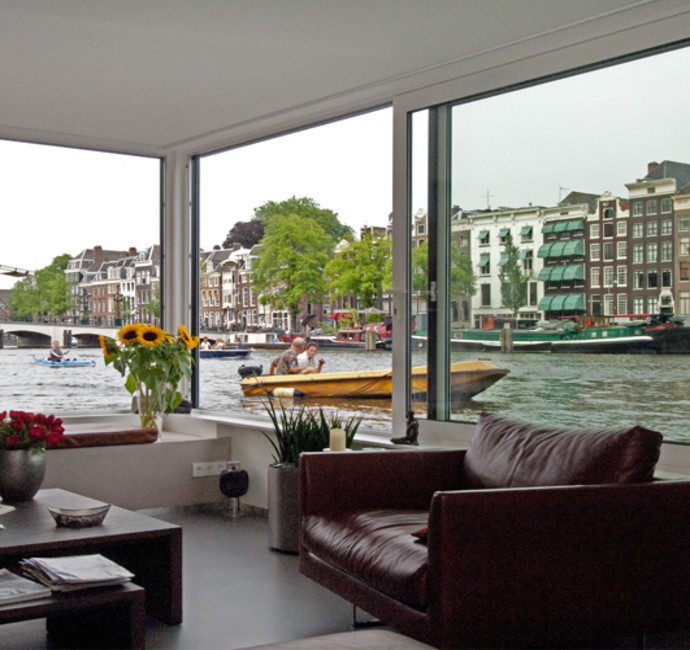 Een moderne ark in een historische hotspot van Amsterdam – dat was de uitdaging. Hans kreeg zijn strakke ark door de Welstandscommissie en woont als een prins op de Amstel.
