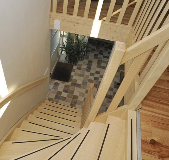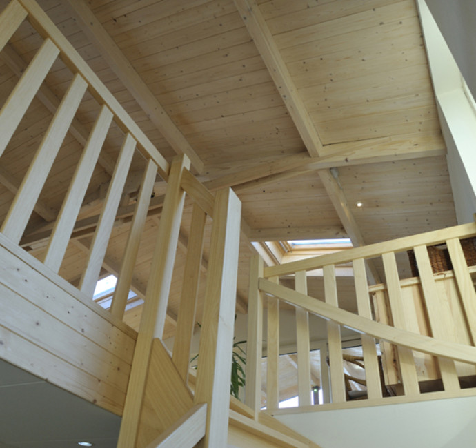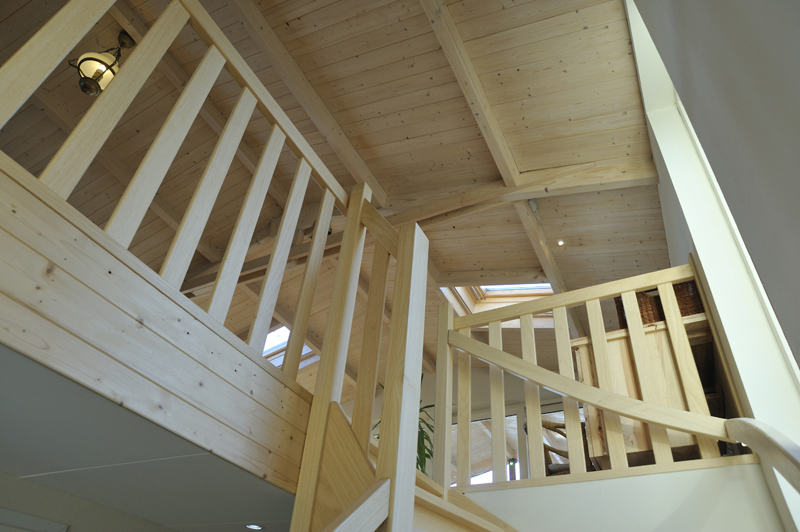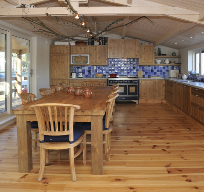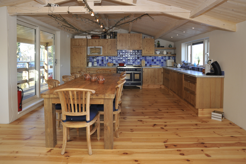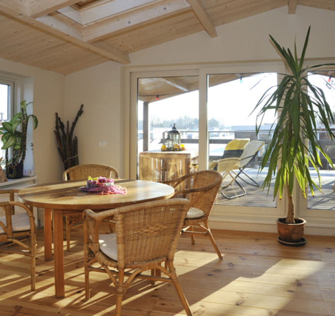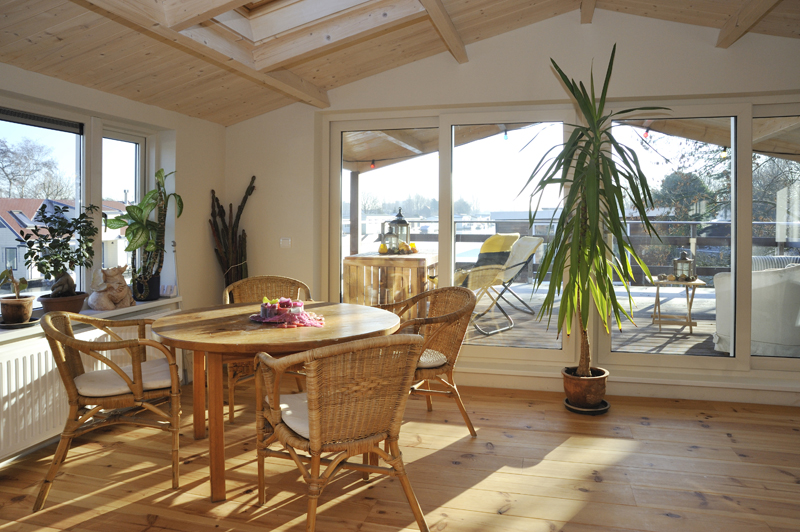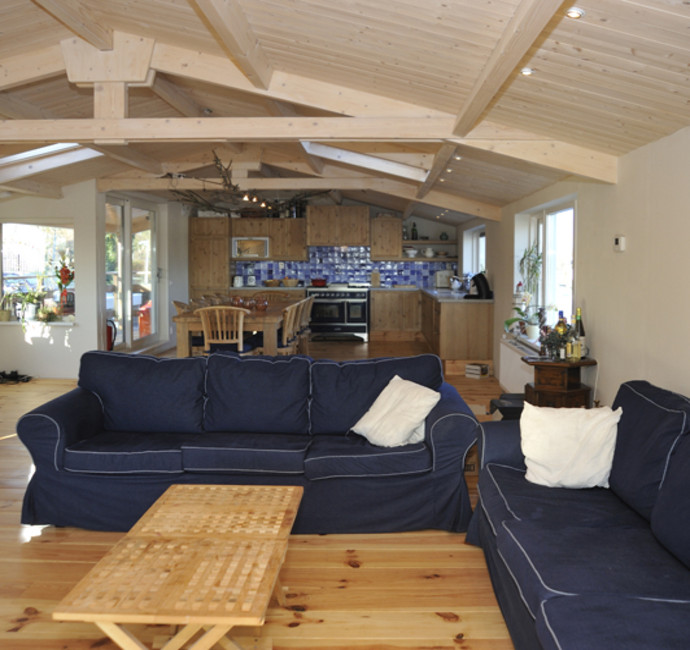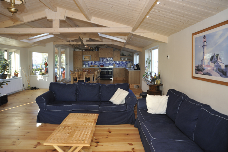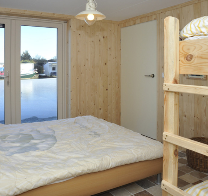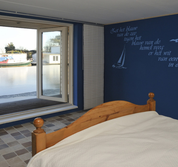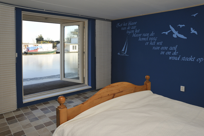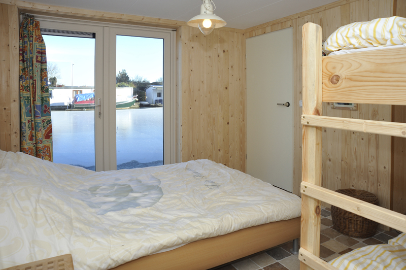 ‘Met de vloer- en plafondafwerking hebben we een groot deel van de sfeer in onze ark bepaald. Kijk maar eens naar het schuine dak met in het zicht de dakspanten. We vinden het leuk om de dakconstructie met daartussen mooi betimmerd hout te zien. Het lijkt wel een beetje een blokhut en geeft echt een vakantiegevoel. Nu we erin wonen, hadden we achteraf onze ramen nog wel groter gewild.’