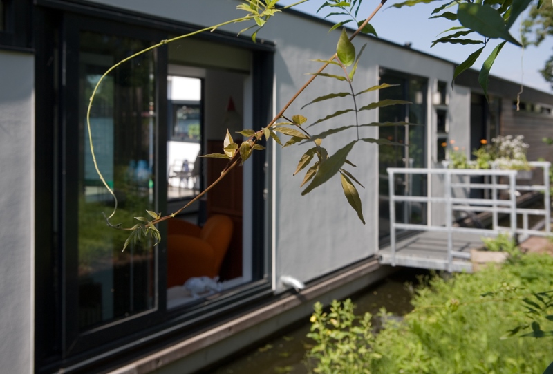 'De vergunning was een langdurig proces, onder andere omdat de gemeente het ontwerp wel prachtig vond, maar toch niet wilde accepteren'. Marc Seidl van dL-Architecten tekende onze ark met bijzondere accenten. Zo moesten kleine optische verhogingen aan wal- en waterzijde er bijvoorbeeld af.