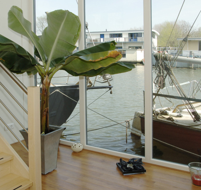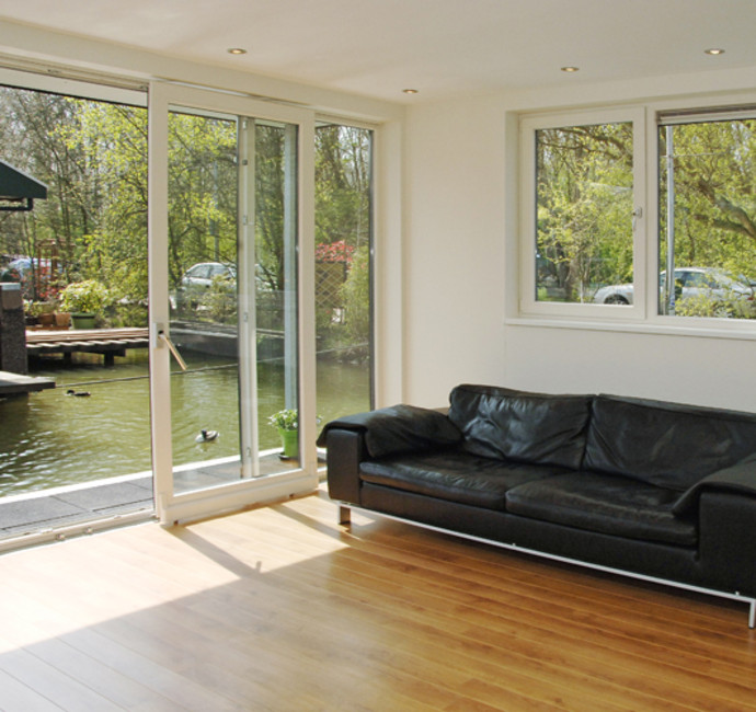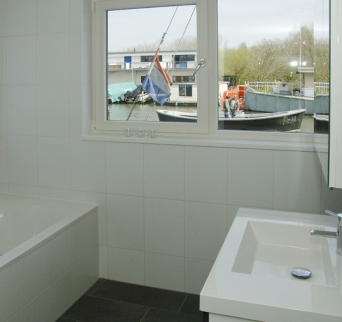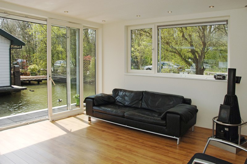 Henk en Yvonne Bezemer woonden op een oude loodskotter aan de Nieuwendammerkade in Amsterdam. ‘Gezien onze leeftijd viel het onderhoud zwaar. Voor de toekomst moest de nieuwe woonark vooral comfortabel zijn en makkelijk te bewonen, ook met eventuele toekomstige beperkingen. Ook wilden we veel licht hebben, met veel glas, zonder het gevoel te hebben in een aquarium te wonen. We zochten contact met diverse arkenbouwers. Bij ons eerste bezoek aan ABC werden we rondgeleid op de werf. We kregen veel ideeën doordat een aantal arken, bijna klaar voor transport, buiten lagen. De eerste ontwerpschets van ABC kwam verbluffend overeen met onze wensen.’