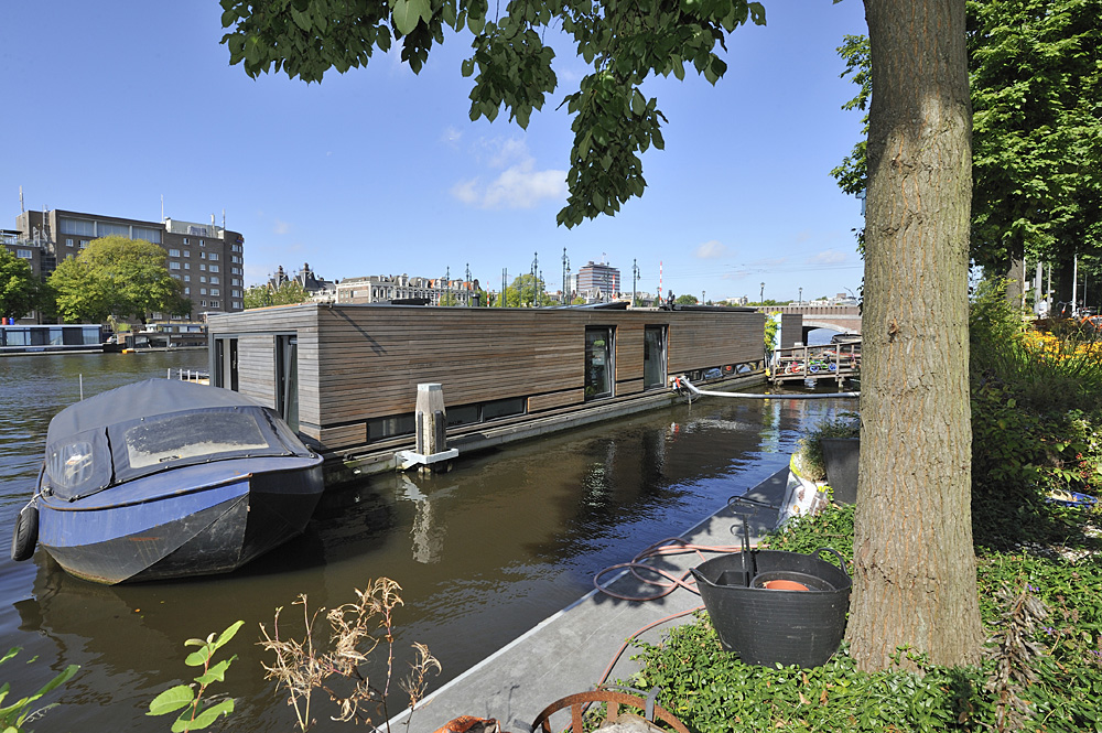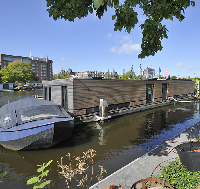 De woonark steekt 2,5 meter boven de waterlijn uit en er passen daarom ook met gemak twee verdiepingen in.