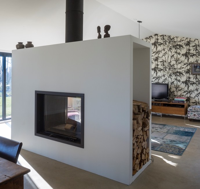 Deze prachtige landelijke ark is afgewerkt met duurzaam Fraké Noir en is zowel gasvrij als energiepositief door een warmtepomp en zonnepanelen. Het moderne ontwerp gaat moeiteloos op in het landschap.