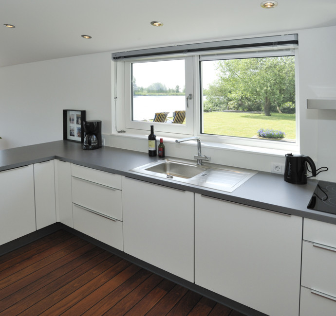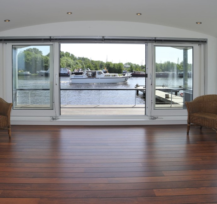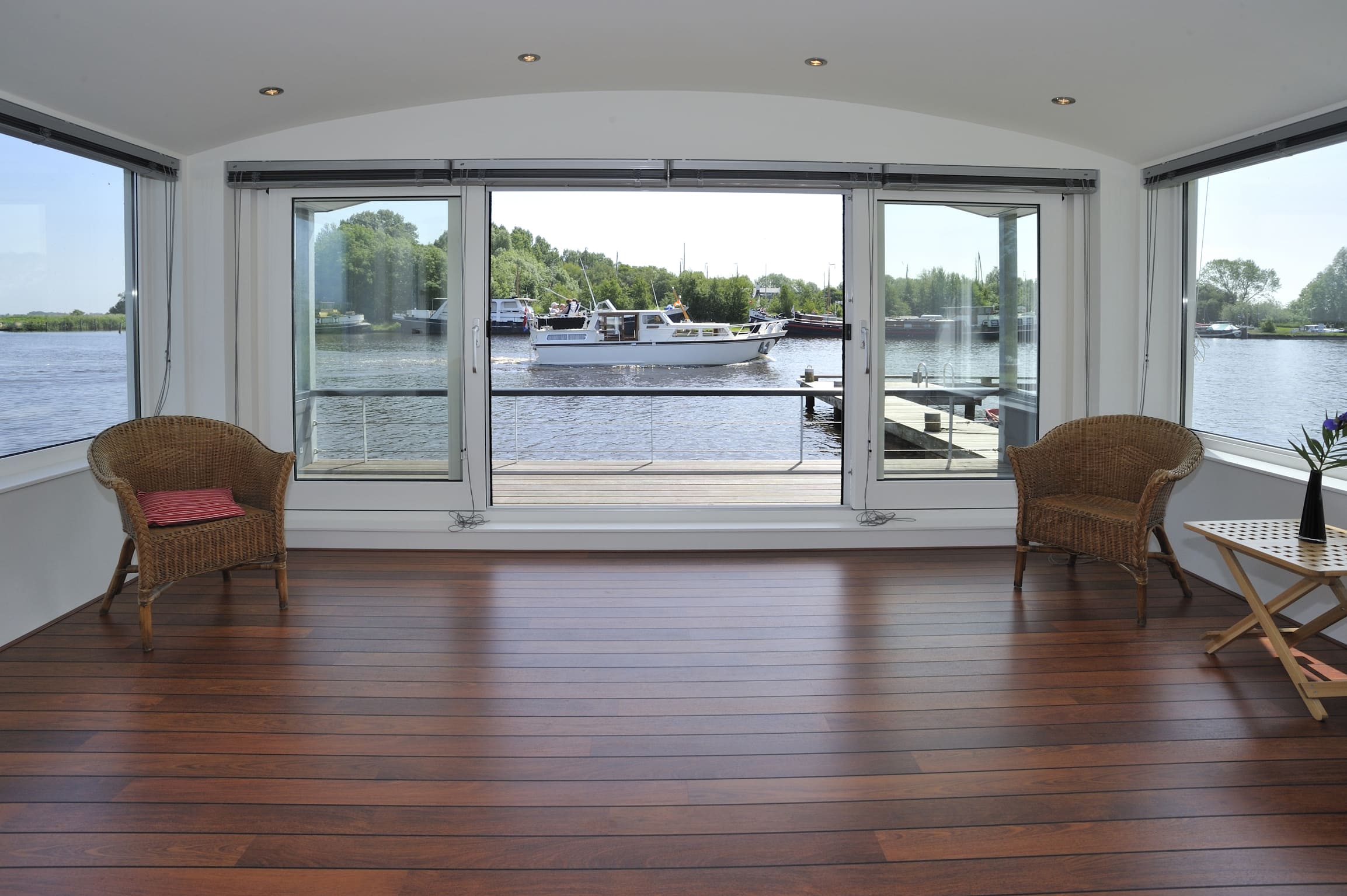 Wie aan Fryslân denkt, denkt aan water, elfsteden, koeien in het prachtige grasland, blauwe lucht en weidse uitzichten. De heer en mevrouw Dijkstra genieten van dit alles vanaf hun recreatieark in het plaatsje De Veenhoop vlakbij Drachten. Vanaf hun sfeervolle veranda, die vanuit de woonkamer door schuifpuien te bereiken is, zien ze de vrolijke zeiltjes van de bootjes van de zeilschool er tegenover. Af en toe vaart een andere boot rustig voorbij. Ruim van opzet met zelfs drie slaapkamers, maakt het een praktische thuishaven om te genieten.
