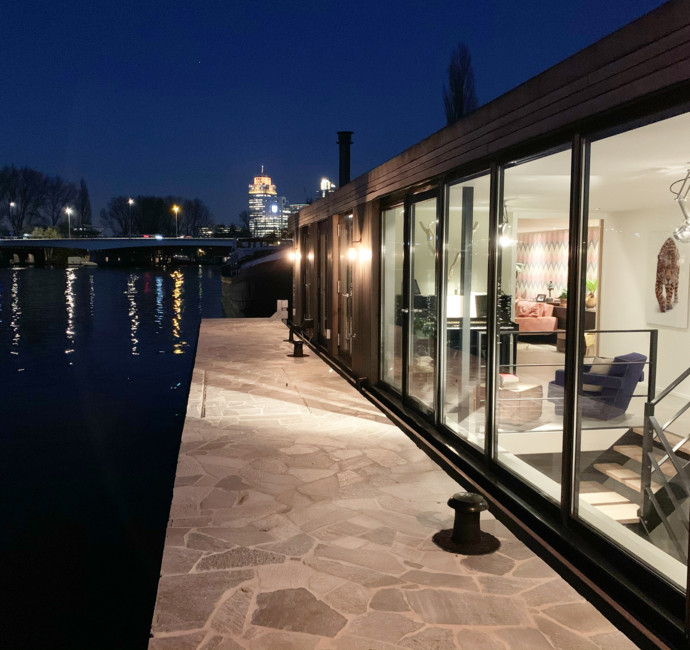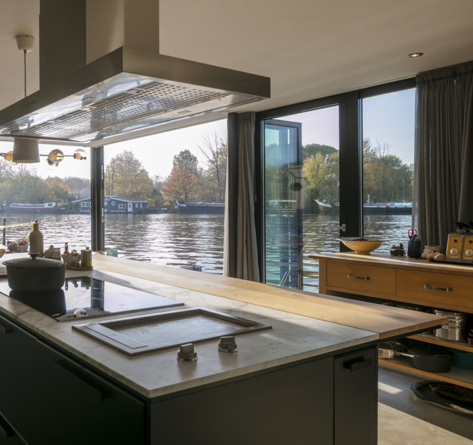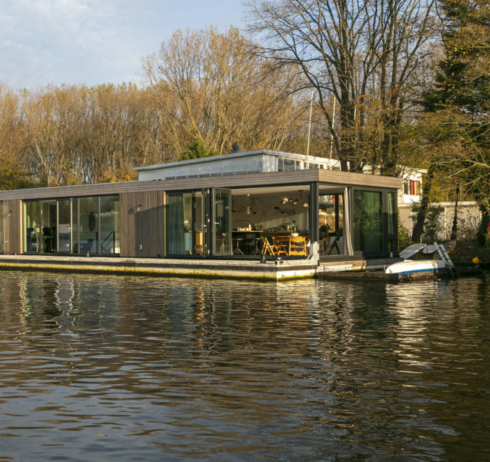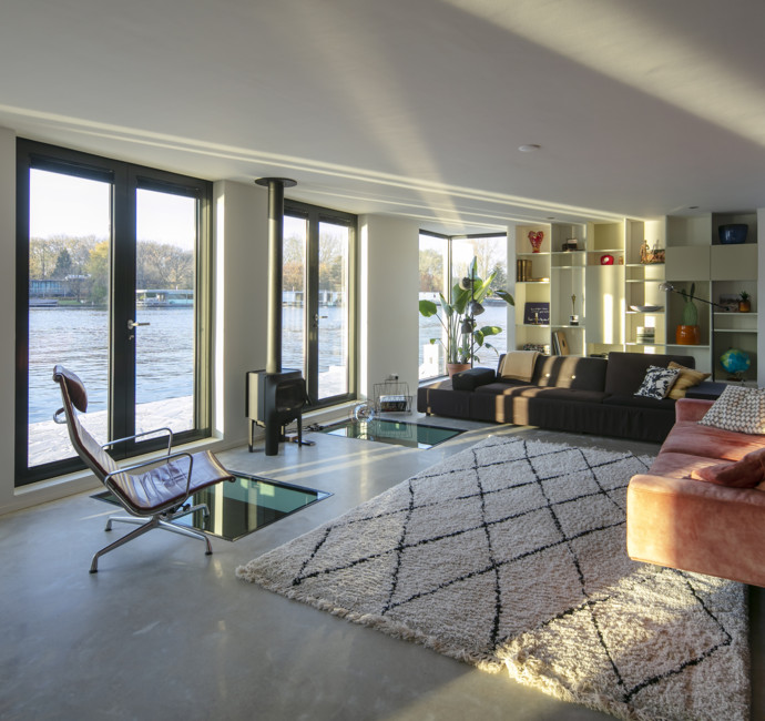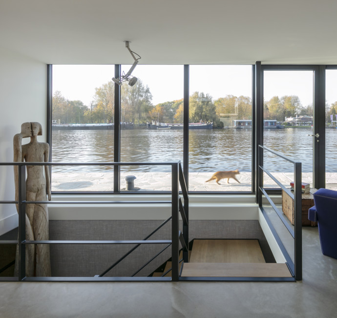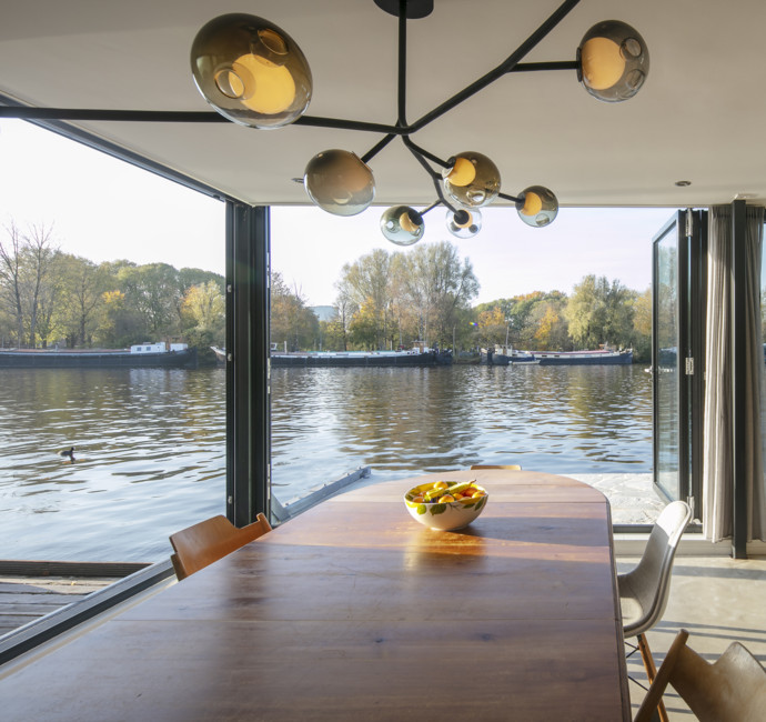 Wat een wow-effect als je door de vrij gesloten gevel binnenstapt en wijds de rivier over kijkt! Deze ark is ontworpen voor een optimale binnenwereld, waarbij de buitenkant volgend is.