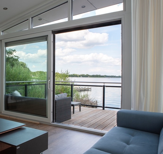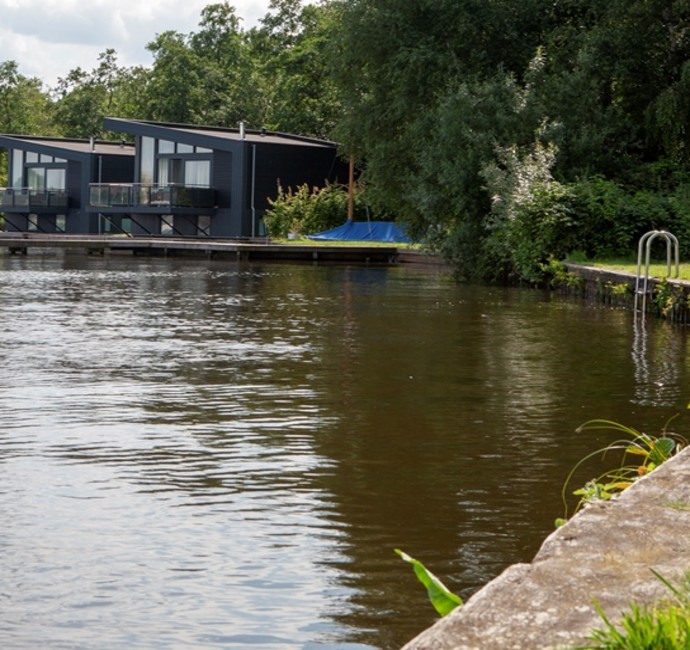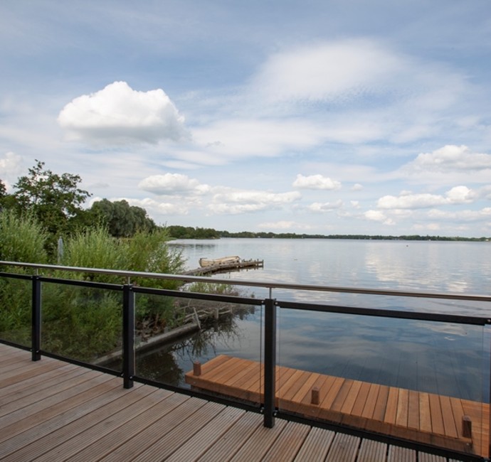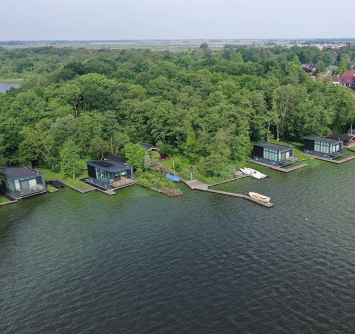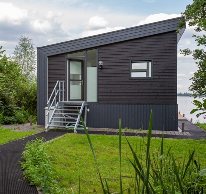 Deze vier prachtige woonarken worden gebruikt als recreatiewoningen en liggen aan het Paterswoldsemeer, Groningen. Ontworpen door JAS Architecten (Jeroen Architectuur Studio). Een prachtige plek met een weids uitzicht.