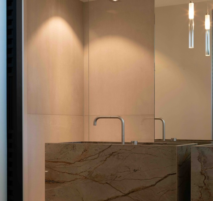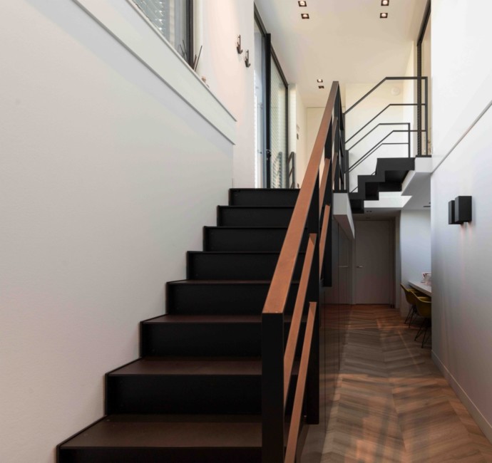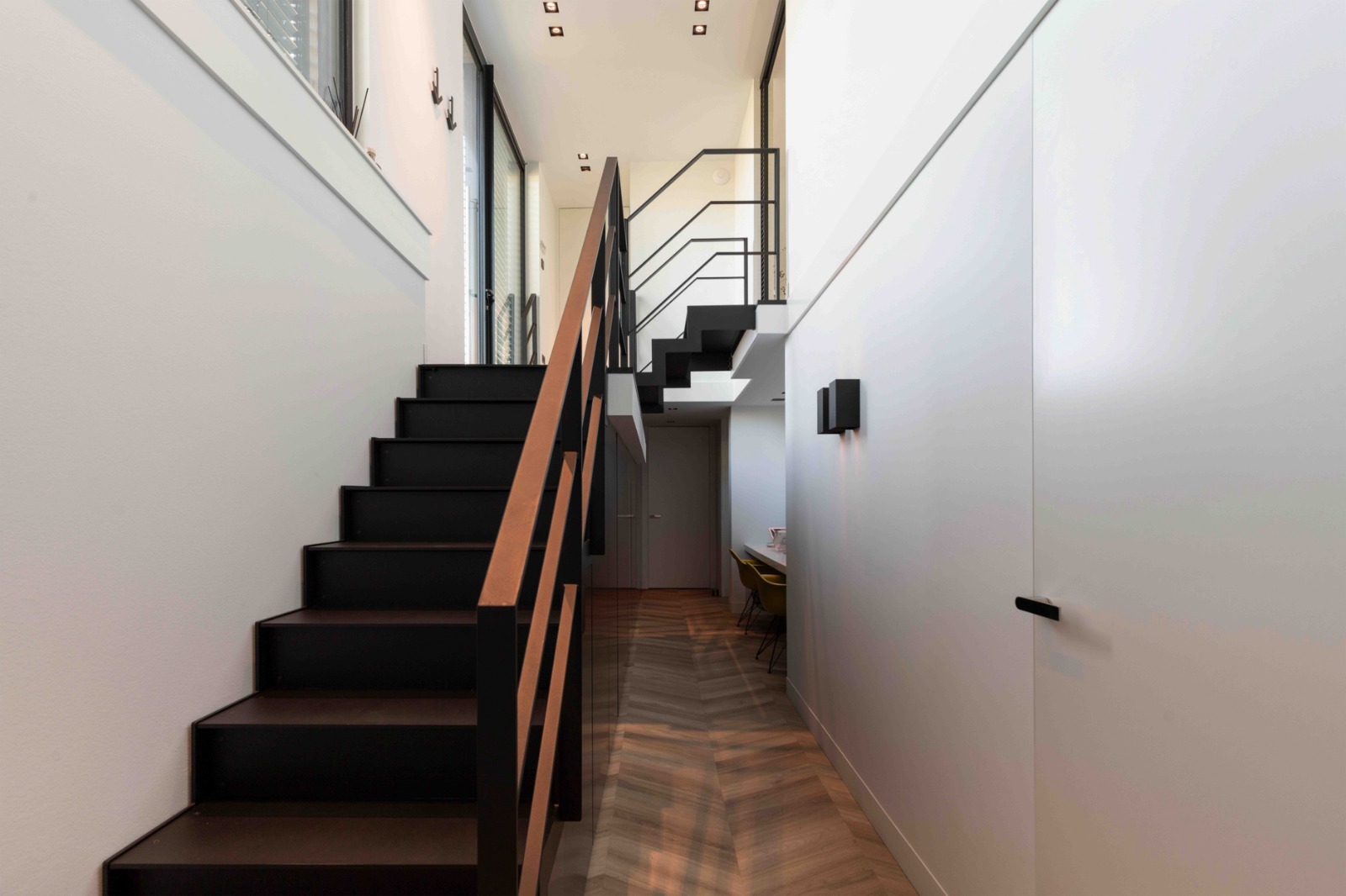 Om inkijk te voorkomen werden aluminium lamellen geplaatst. Natuurlijk is het glas gehard, de isolatie optimaal en is de woning uiteraard degelijk en duurzaam gebouwd.