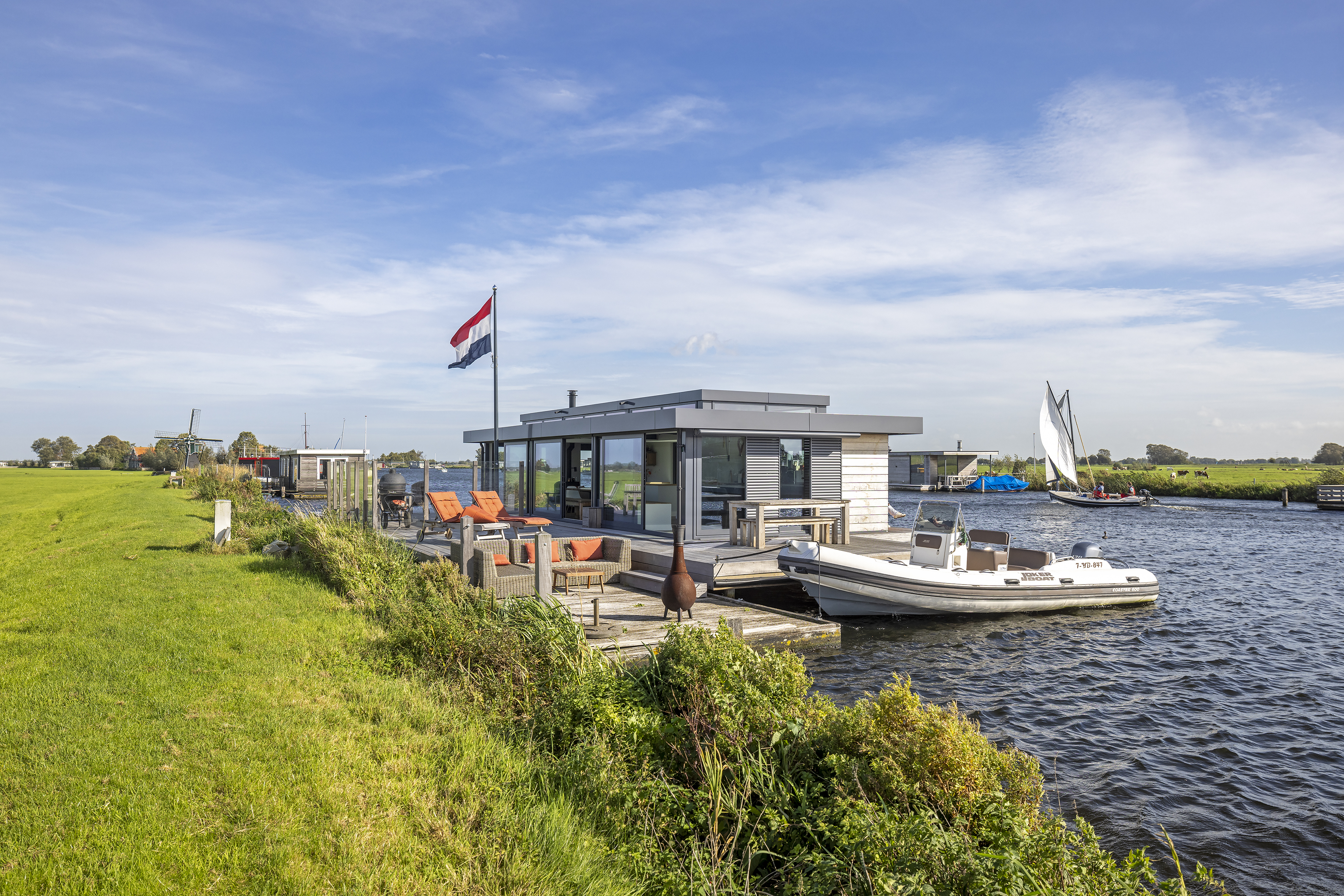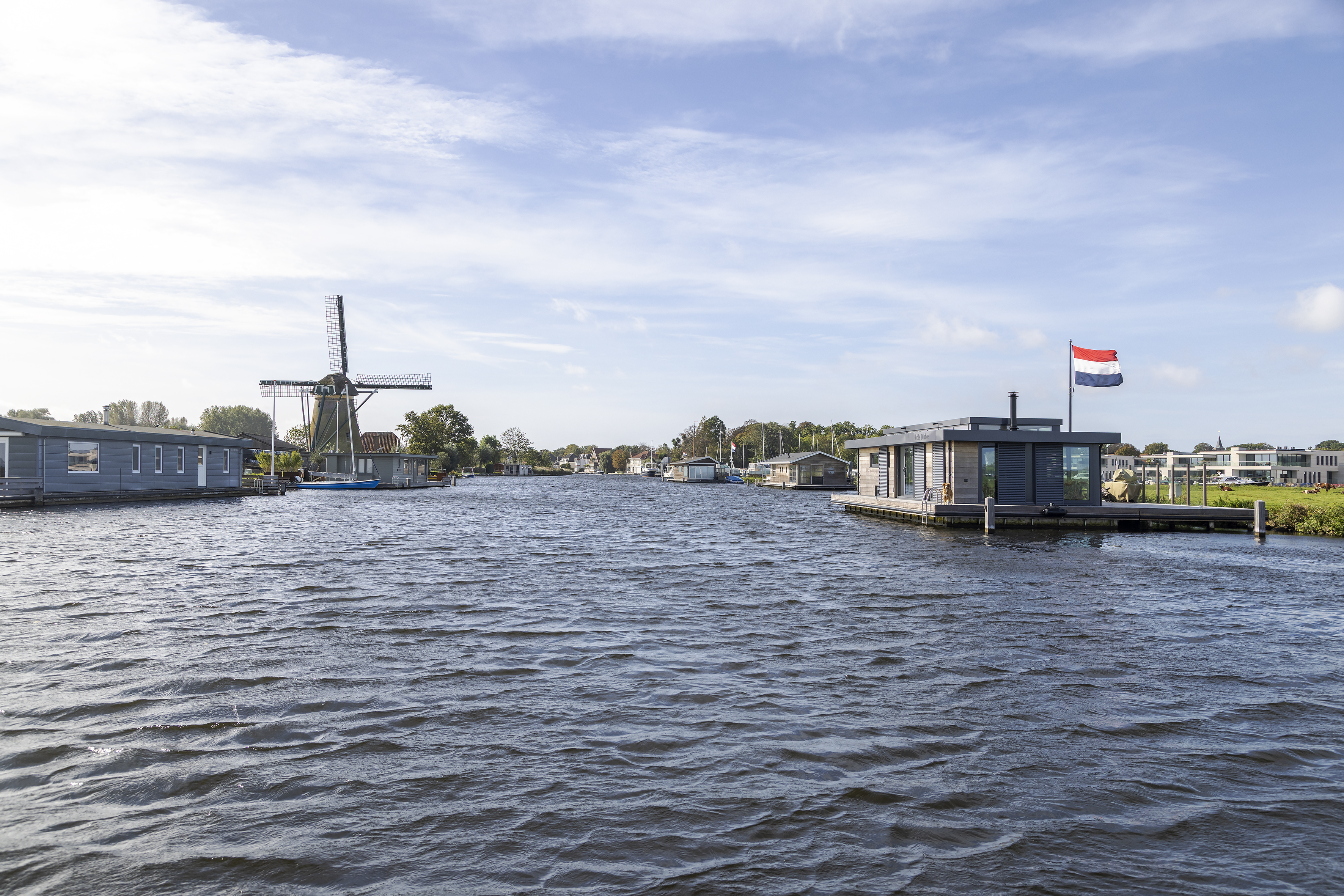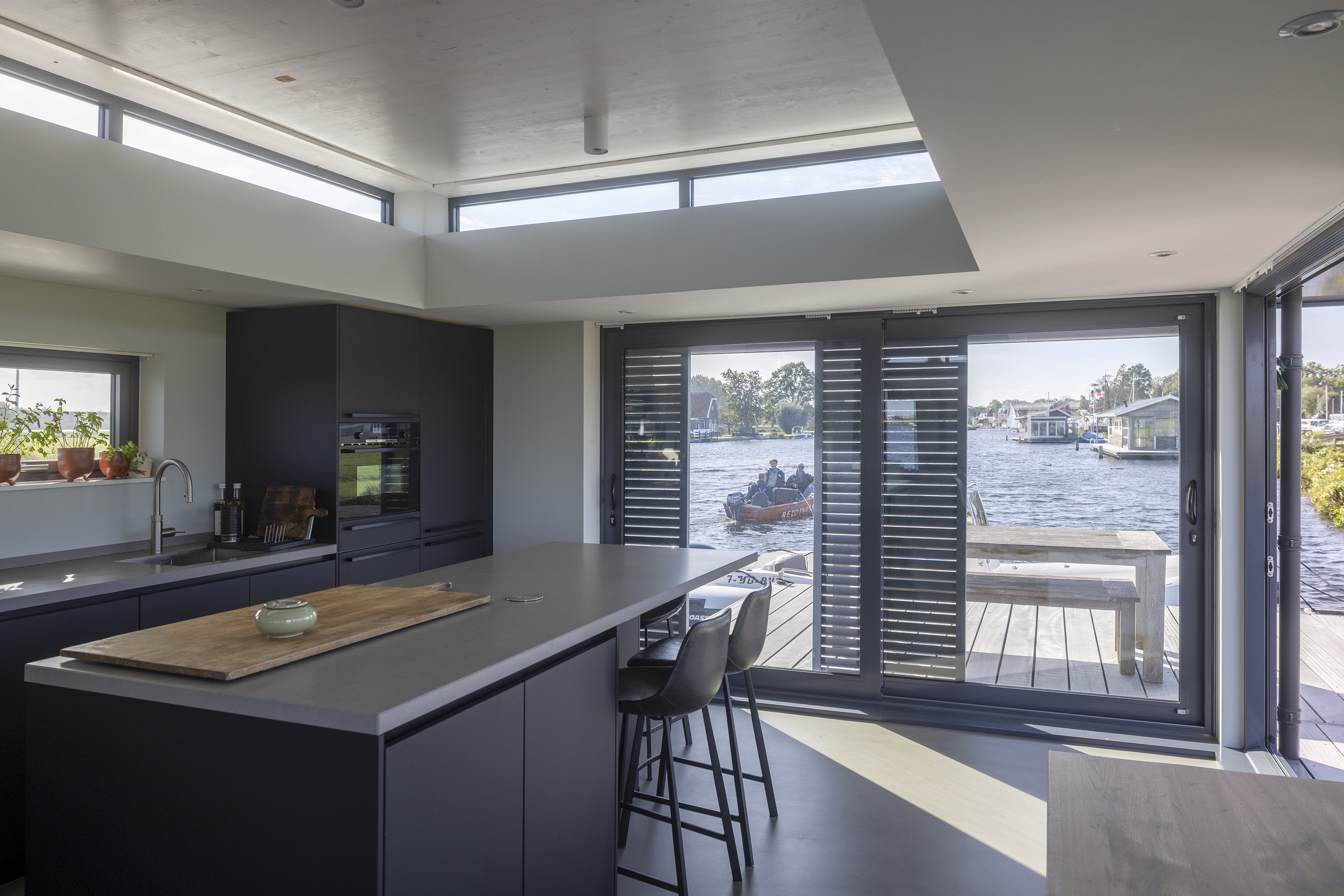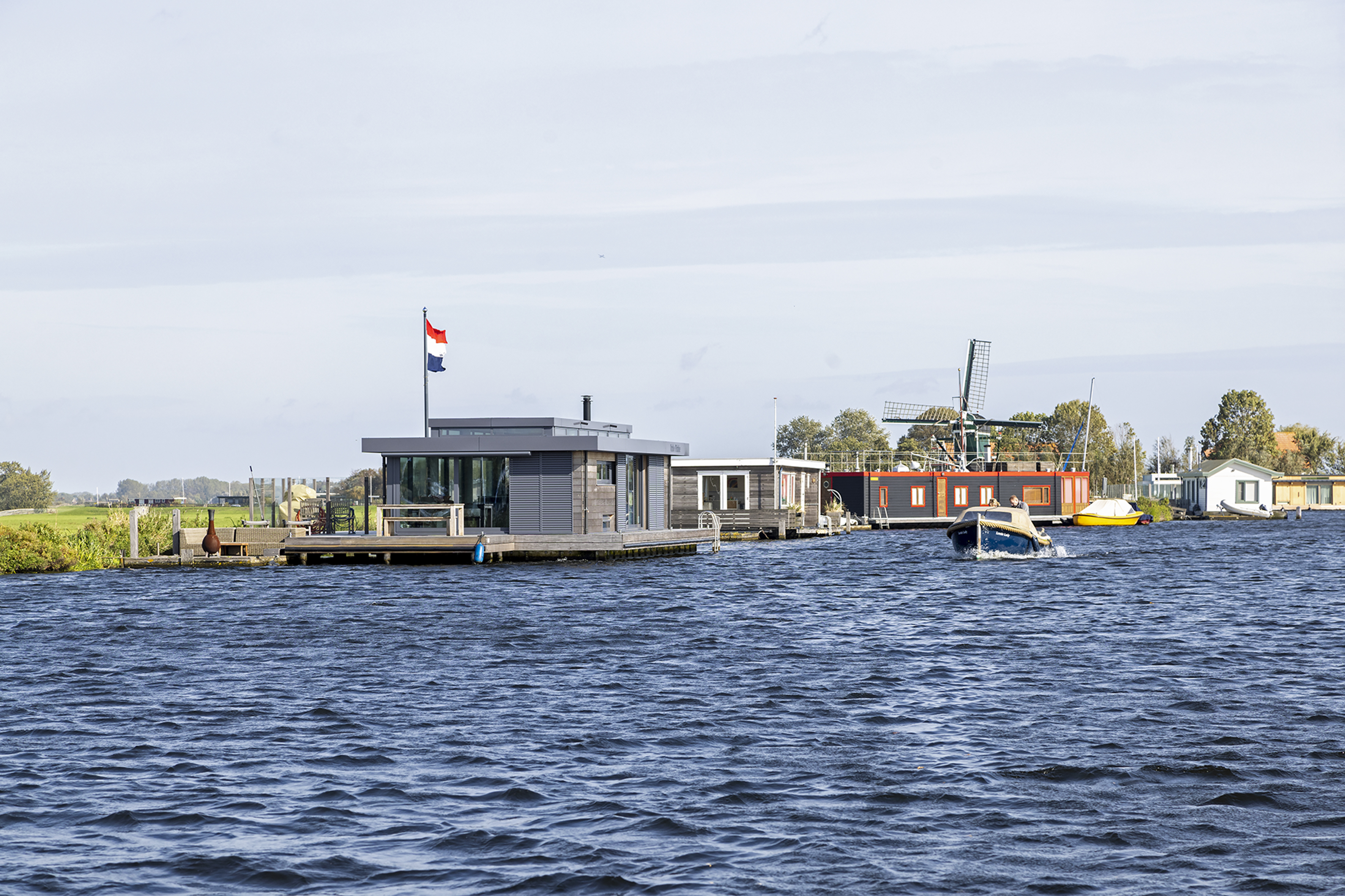 Architect Bob Ronday vertelt: "Voor een prachtige ligplek in Warmond hebben we deze twee-laags recreatie-woonark ontworpen.
