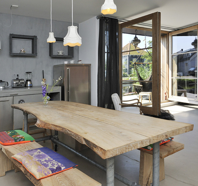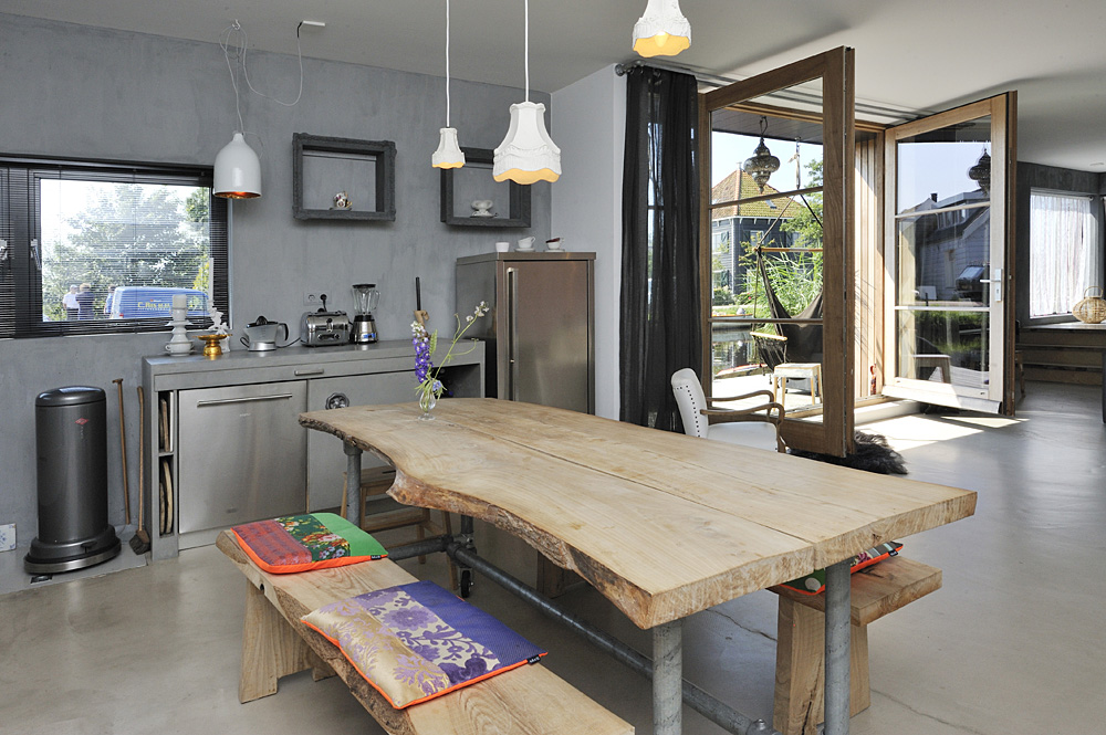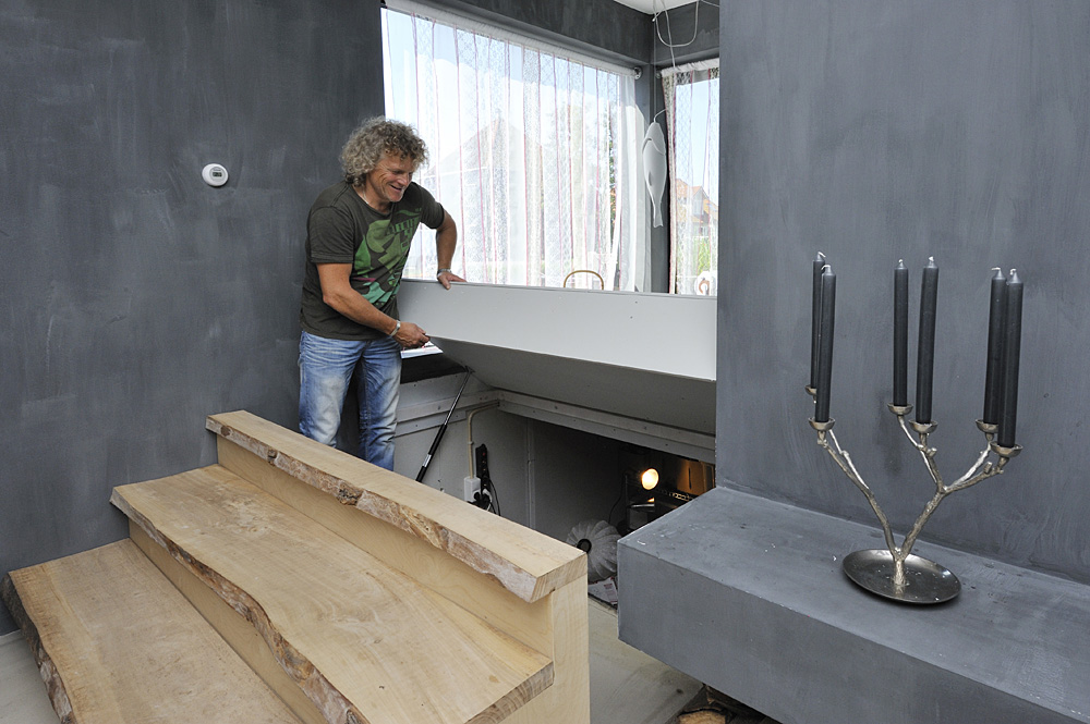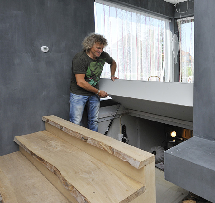 Dit is allemaal goed gelukt. De deuren zijn speciaal op maat gemaakt en van onbehandeld Meranti. In de vloer is een krimpscheur gekomen. Daar zijn we nu mee bezig om dat op te lossen. Maar dat doet geen afbreuk aan ons woongenot.